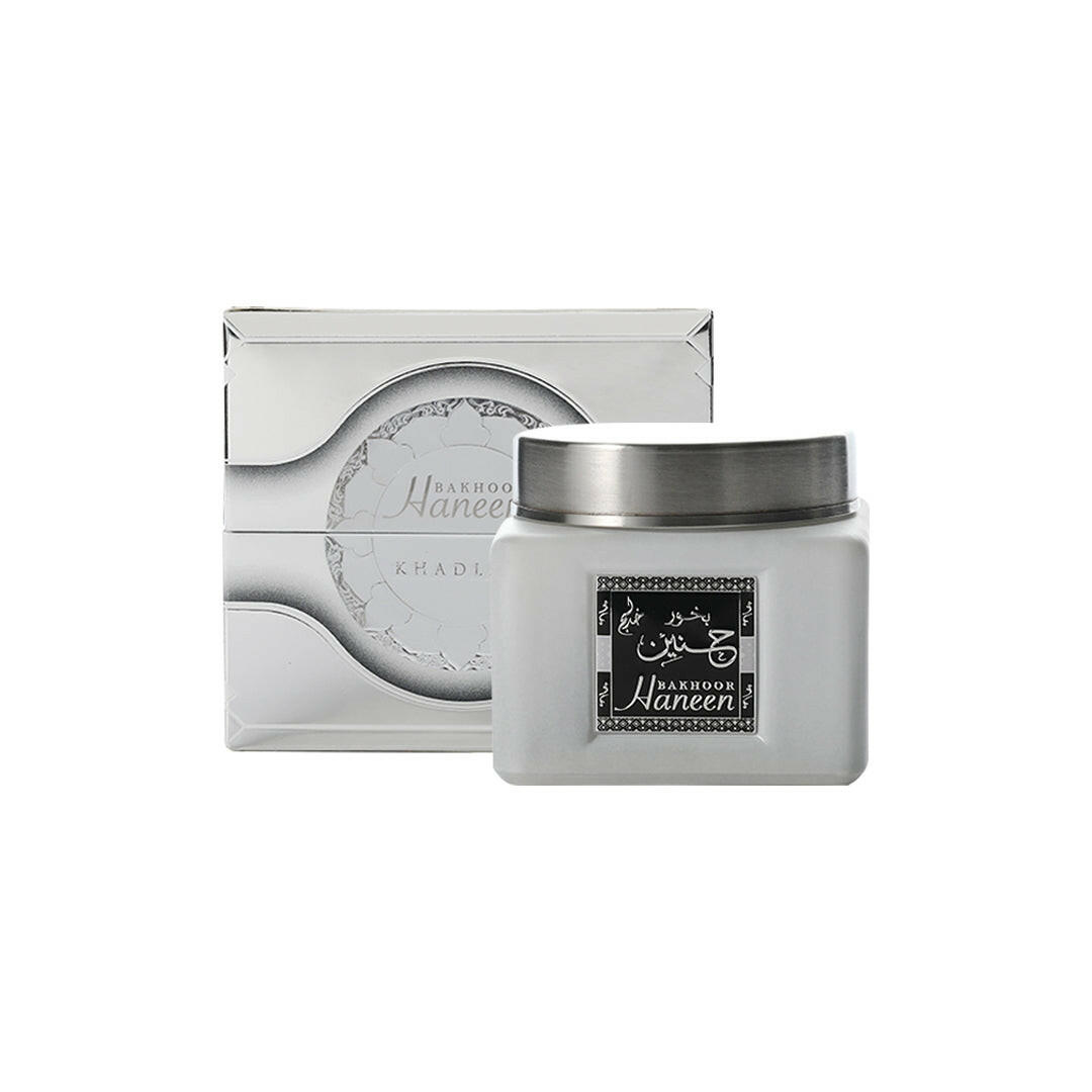 BAKHOOR HANEEN 100 GMS is a top-quality bakhoor that contains a mixture of natural essence ingredients. It releases its famous fragrance slowly and evenly into the air. it can also be used as an aromatherapy to freshen up one's mood and it can an aromatic environment to the lives of your loved ones. This luxuriant home fragrance with the top notes of Saffron can also be used in the office environment with its unique aromatic effect.