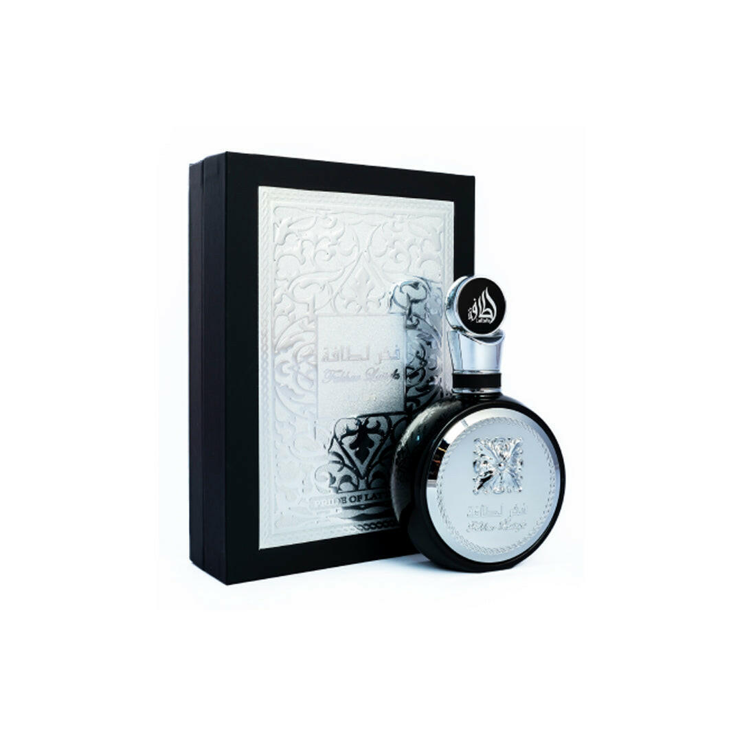 Fakhar Lattafa (Pride of Lattafa) Black / Silver Perfume / Eau de Parfume by Lattafa Perfumes is an Amber fragrance for men. This is a new fragrance. Fakhar Black / Silver was launched in 2021. The top notes are Apple, Bergamot and Ginger; the middle notes are Lavender, Sage, Juniper Berries and Geranium; the base notes are Tonka Bean, Amberwood, Cedar and Vetiver.
