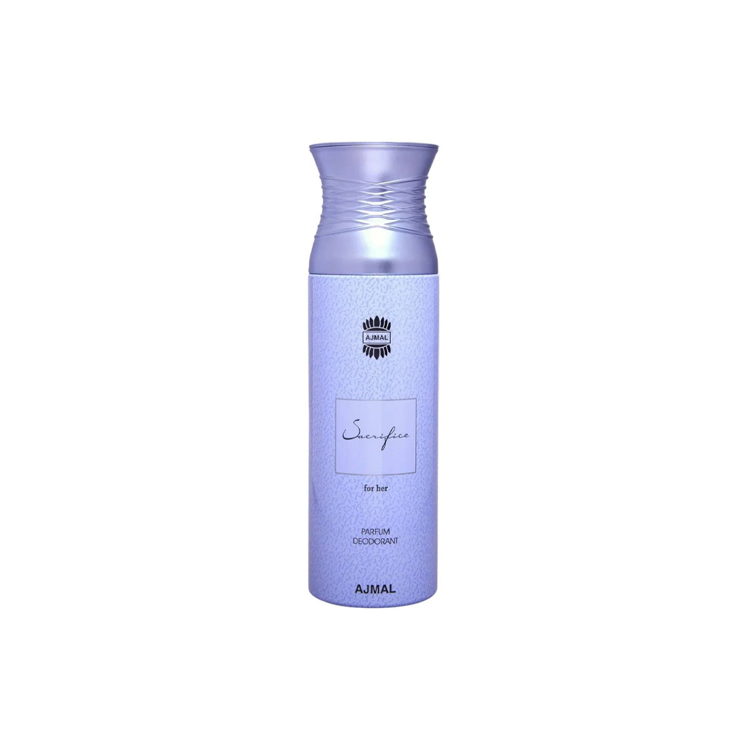 Ajmal Sacrifice For Her Deodorant in a 200ml bottle is a tribute to the multifaceted modern woman - emotional, intelligent, and quietly confident. This Body Spray is a delicate harmony of strength and softness. It opens with a unique Aqua-floral top note, thanks to the robust presence of Jasmine and refreshing Aqua notes. The heart of the scent is a sensual blend of Orange Blossom and Vanilla, creating a Floral-Musky allure. Completing this exquisite olfactory journey, the base notes of Amber and Musk add depth with their Woody, Musky essence. Sacrifice For Her is not just a Deodorant; it's a celebration of caring and understanding women everywhere.